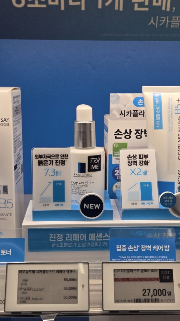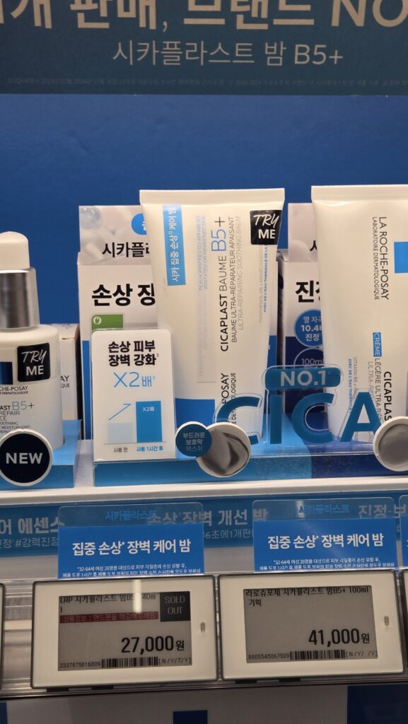 올리브영 매장에 진열된 라로슈포제 시카플라스트 밤 B5+와 템나무 추천 화장품 02